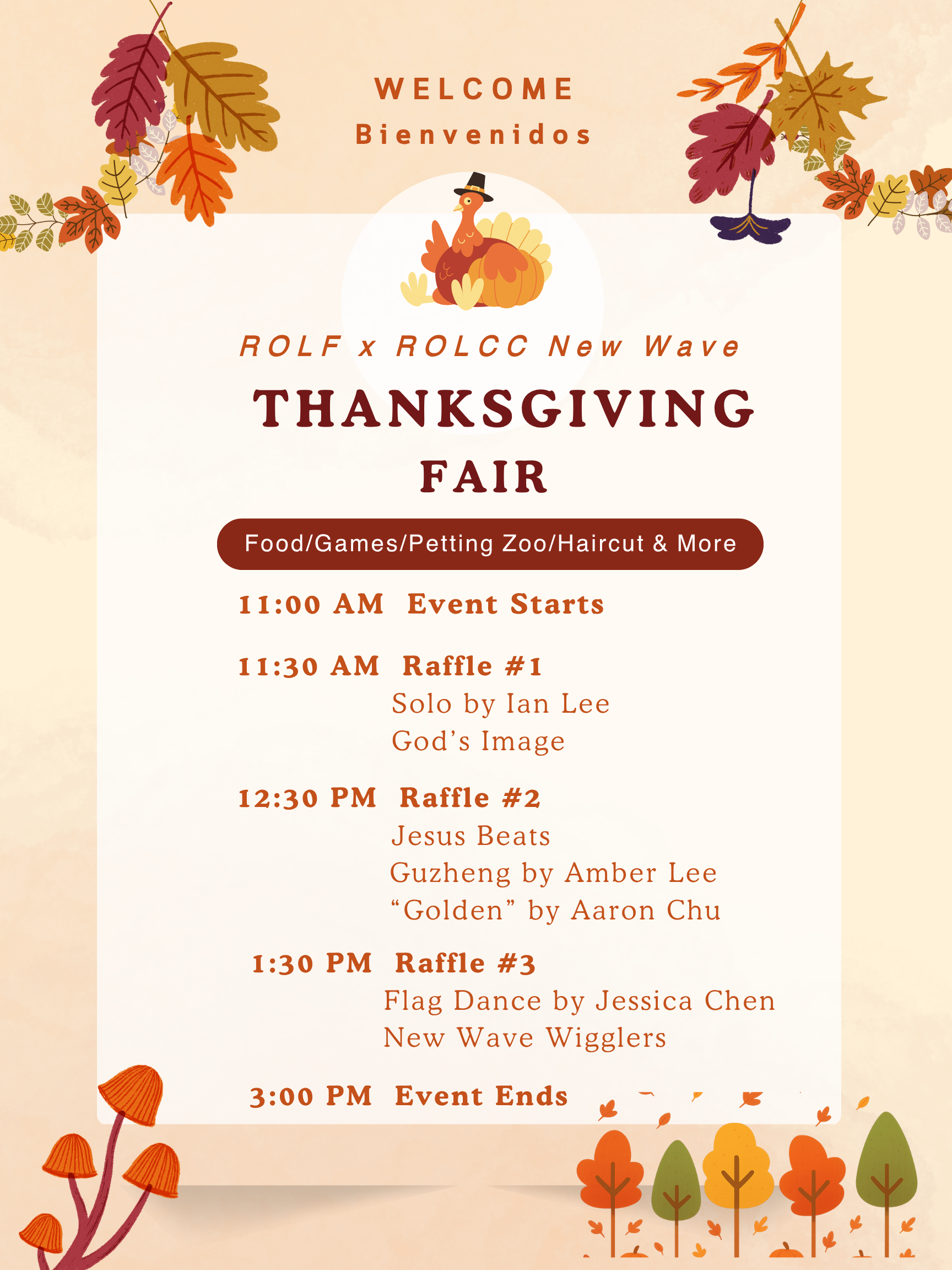 Thanksgiving Fair - To celebrate Thanksgiving and spread the love with our local community, River of Life Foundation expands our “parking lot ministry” and serves free Thanksgiving lunch to everyone who comes to join us. (First Come First Serve)